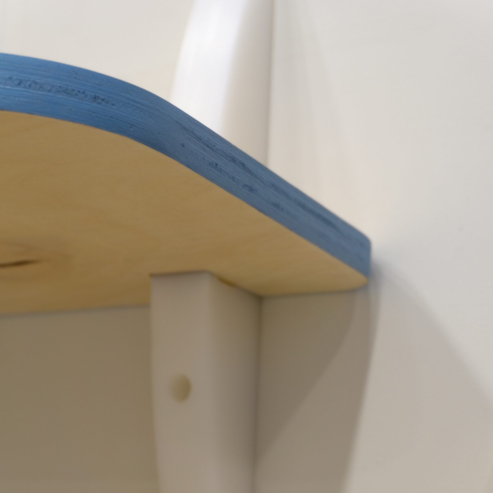 Scotcher le pochoir de pose fourni à l’endroit où vous souhaiter disposer votre étagère, percer au bon endroit, installer les chevilles adéquates sur votre mur, visser les supports blancs sur les chevilles. Il ne vous reste plus qu’a vos étagères en bois sur les supports blancs grâce aux encoches situées sur le dessous de votre étagère. C’est prêt !